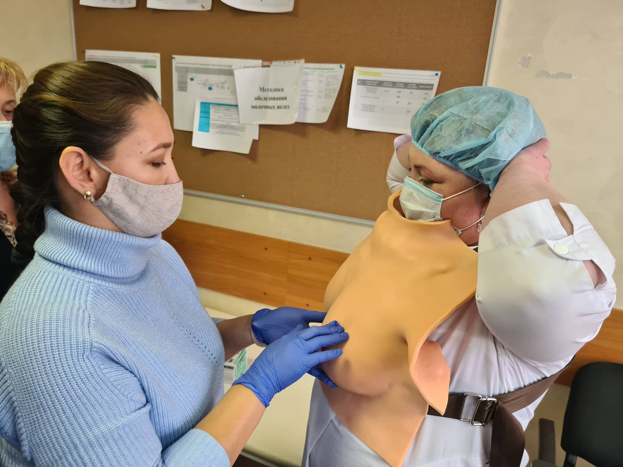Медицинские сестры, фельдшеры, акушерки, заведующие отделениями профилактики из 18 медорганизаций, 48 специалистов-практиков, те, кто непосредственно работает в кабинетах раннего выявления заболеваний, приняли участие в данном мероприятии. Они ознакомились с организацией работы такого кабинета, методами ранней диагностики рака, исследования различных органов и систем с целью определения возможных патологий. Каждый специалист смог закрепить полученные знания во время мастер-классов – вторая часть семинара прошла в формате практикума, где все участники детально отработали на манекенах практические навыки: забор мазка на онкоцитологию, обследование полости рта, осмотр кожных покровов и лимфатических узлов, обследование щитовидной железы, обследование и самообследование молочных желёз, осмотр и пальпация живота, обследование прямой кишки, предстательной железы, мошонки, полового члена. Самое ценное – это не только знания, но и опыт, полученный на семинаре. Участники оттачивали навыки обследования щитовидной железы друг на друге, в результате чего у двух человек были обнаружены изменения органа, без симптомов и жалоб, поэтому в ближайшее время эти специалисты пройдут диагностику и получат консультацию врача.