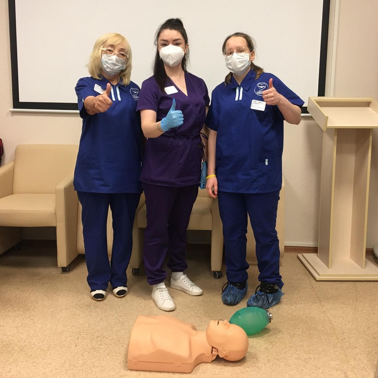 Очередное занятие в поликлинике прошло для сотрудников Центра поддержки пациентов. Благодаря наличию реалистичного оборудования для мастер-классов, обучающиеся смогли на манекенах отработать проведение сердечно-легочной реанимации и применение приема Геймлиха в ситуации, когда в дыхательных путях застревает инородное тело. Также одной из тем стала остановка кровотечения, в том числе с применением подручных средств. Здесь сотрудникам рассказали об основных принципах, которые позволяют помочь, не навредив.