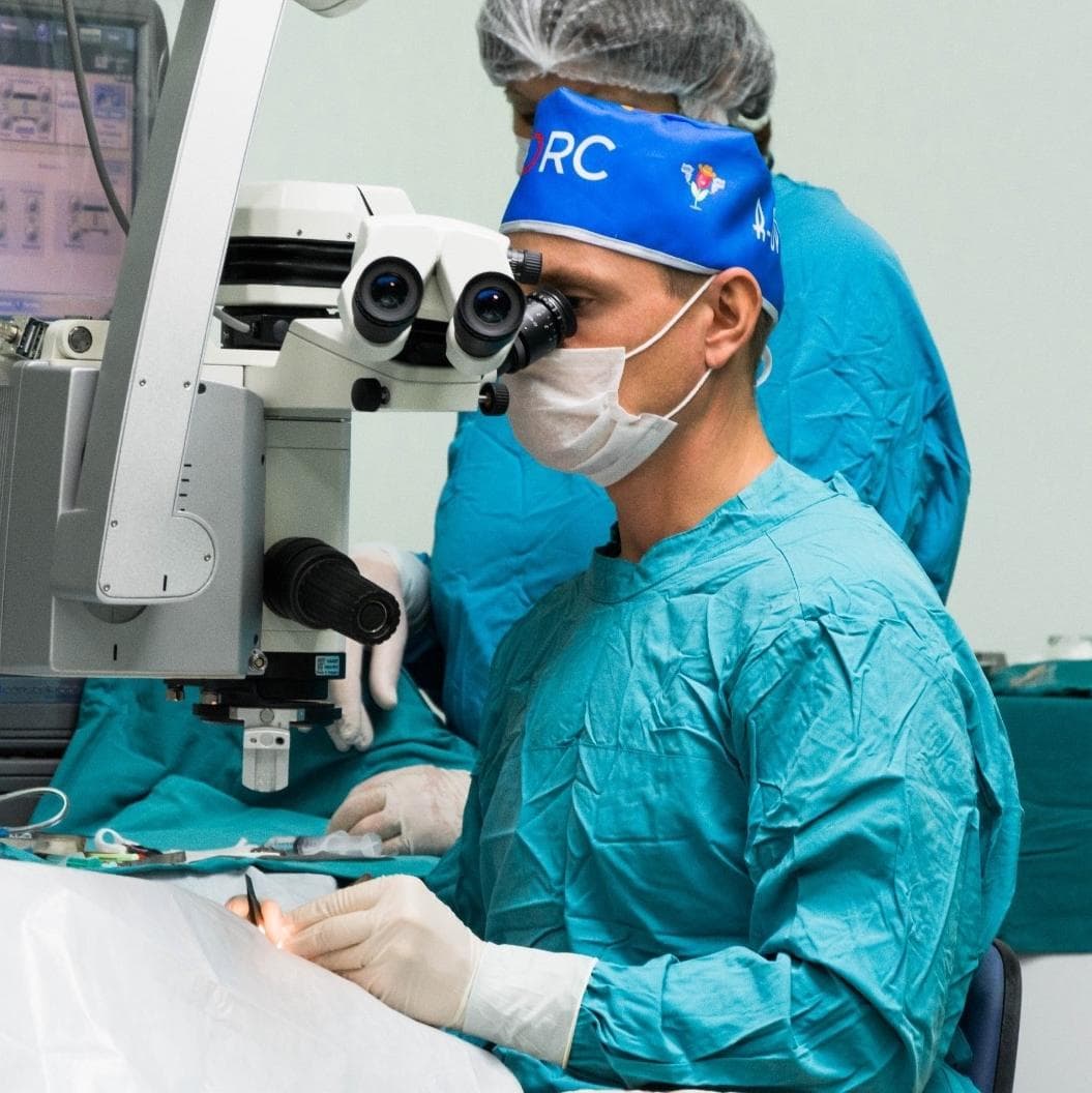 «Мы поэтапно очищали сгустки крови, отделяли их от погибшей сетчатки и сосудистой оболочки, чтобы добраться до жизнеспособных тканей. Получилось центральную часть сетчатки вернуть на место и коагулировать (буквально припаять) лазером. Далее еще ряд ухищрений – сделали так, чтобы силикон не выходил в передние отделы глаза, специальные бандажные швы. Операция проходила под местным наркозом. И надо отдать должное пациенту, который 2 часа лежал неподвижно», – рассказал Григорий Викторович Симоненко, заведующий офтальмологическим отделением ОКБ №1.