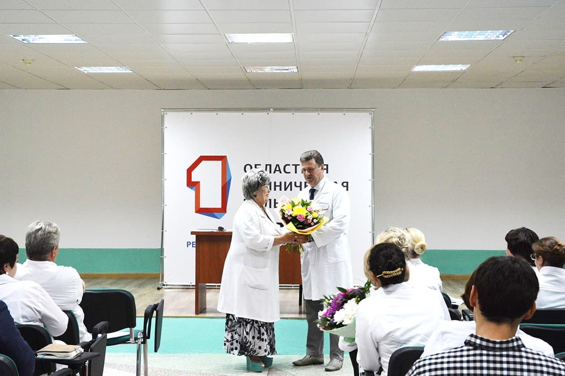 Свой 50-летний юбилей работы в ГБУЗ ТО «ОКБ №1» отметила заслуженный врач России Рудакова Нелли Васильевна. Именно она стояла у истоков создания многих служб Областной клинической больницы №1 и до сих пор продолжает делиться своими знаниями и опытом с коллегами в стенах больницы.