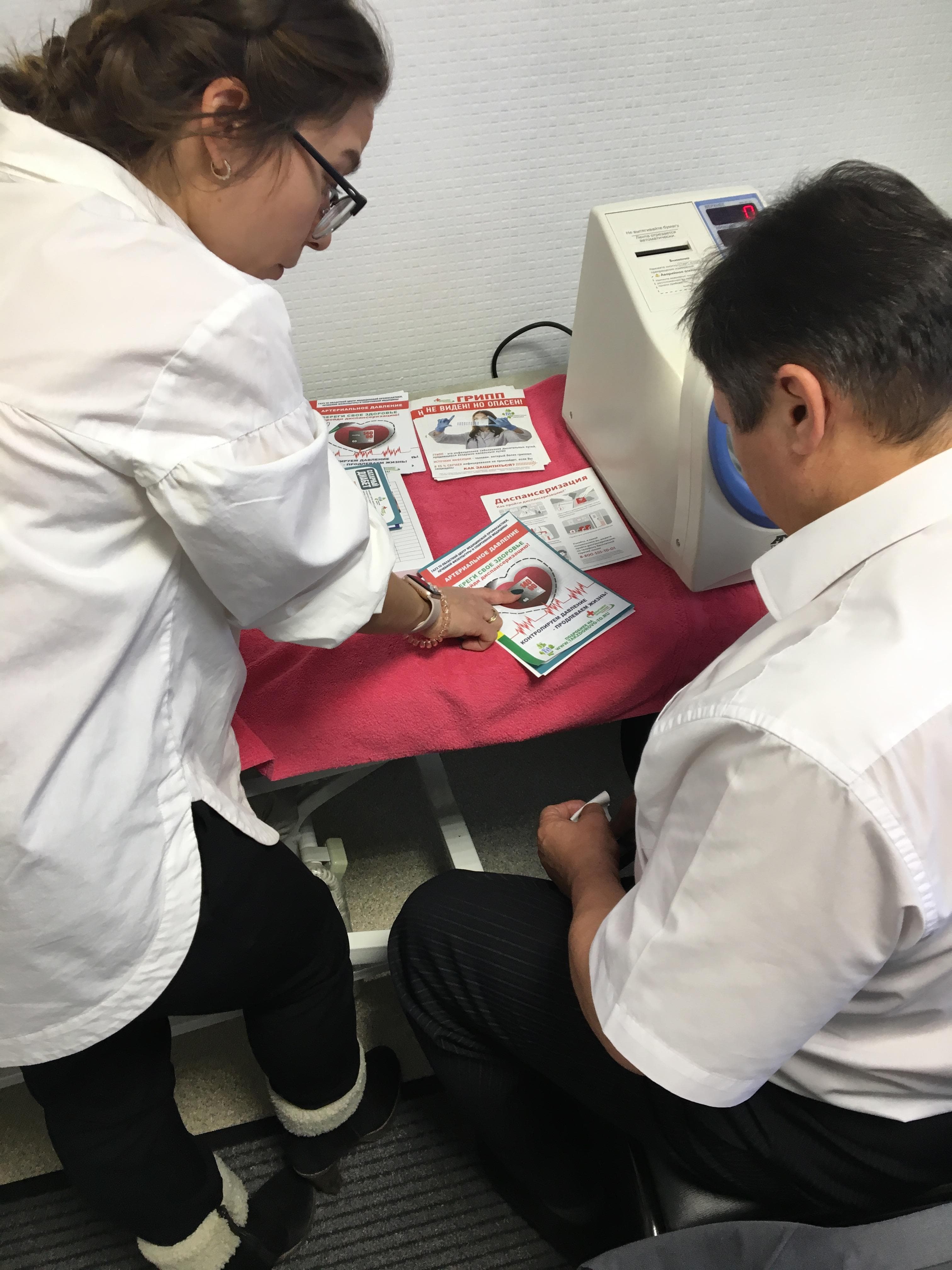 Обследование у специалистов прошли 65 человек. У 15 из них было выявлено превышение показателей уровня сахара и холестерина крови, 25 человек имели повышенное артериальное давление. Врач-методист Областного Центра медицинской профилактики Людмила Трошева каждому из них провела краткое профилактическое консультирование.